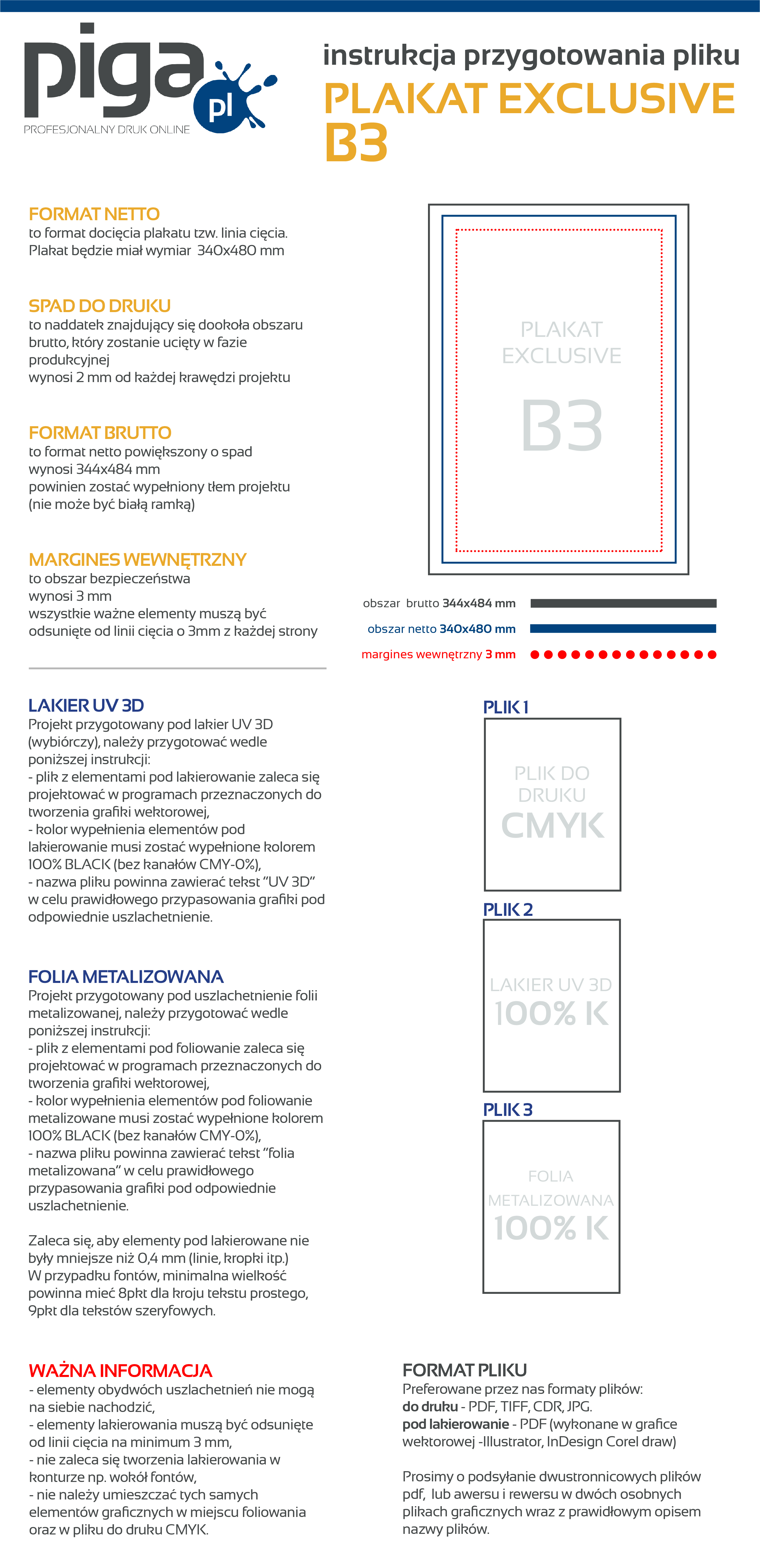 Preferowane przez nas formaty plików to PDF, TIFF oraz JPEG. Udostępniamy instrukcję przygotowania pliku oraz szablony/makiety dla poszczególnych programów graficznych, zapisując je na dysku otrzymujesz zwymiarowane pole robocze, w którym możesz zaprojektować swoją grafikę. Kliknij w ikonkę i ściągnij plik.
