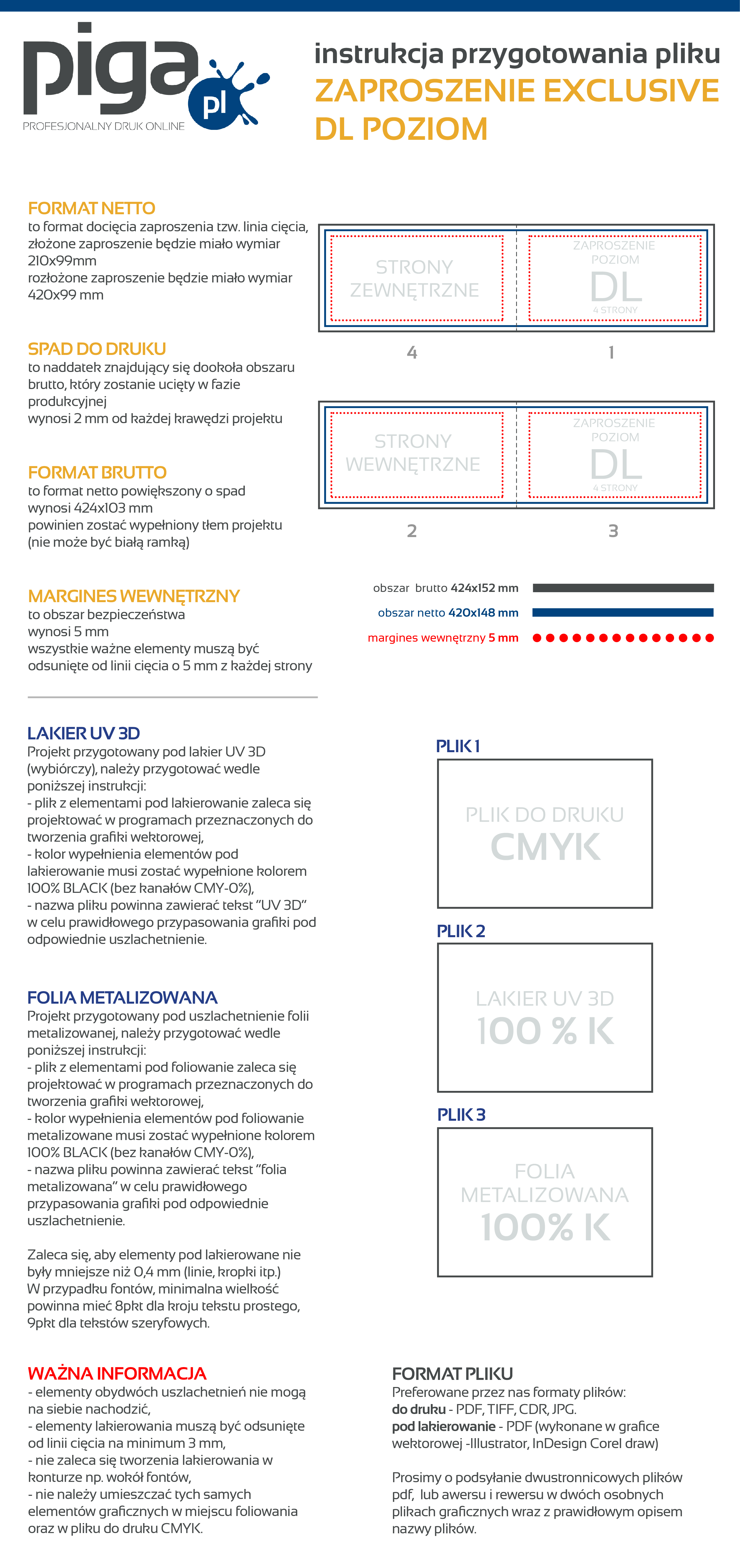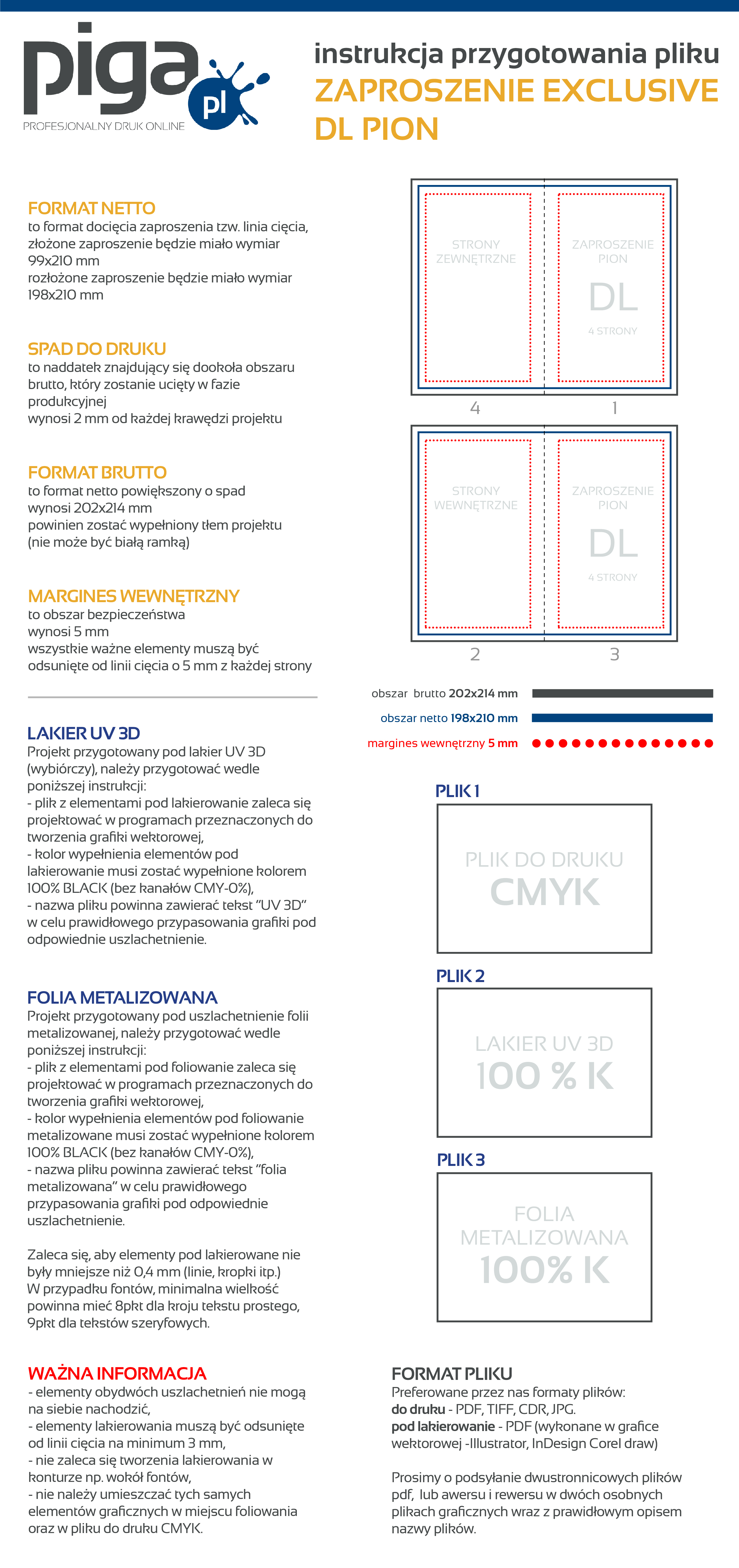 Preferowane przez nas formaty plików to PDF, TIFF oraz JPEG. Udostępniamy instrukcję przygotowania pliku oraz szablony/makiety dla poszczególnych programów graficznych, zapisując je na dysku otrzymujesz zwymiarowane pole robocze, w którym możesz zaprojektować swoją grafikę. Kliknij w ikonkę i ściągnij plik.
