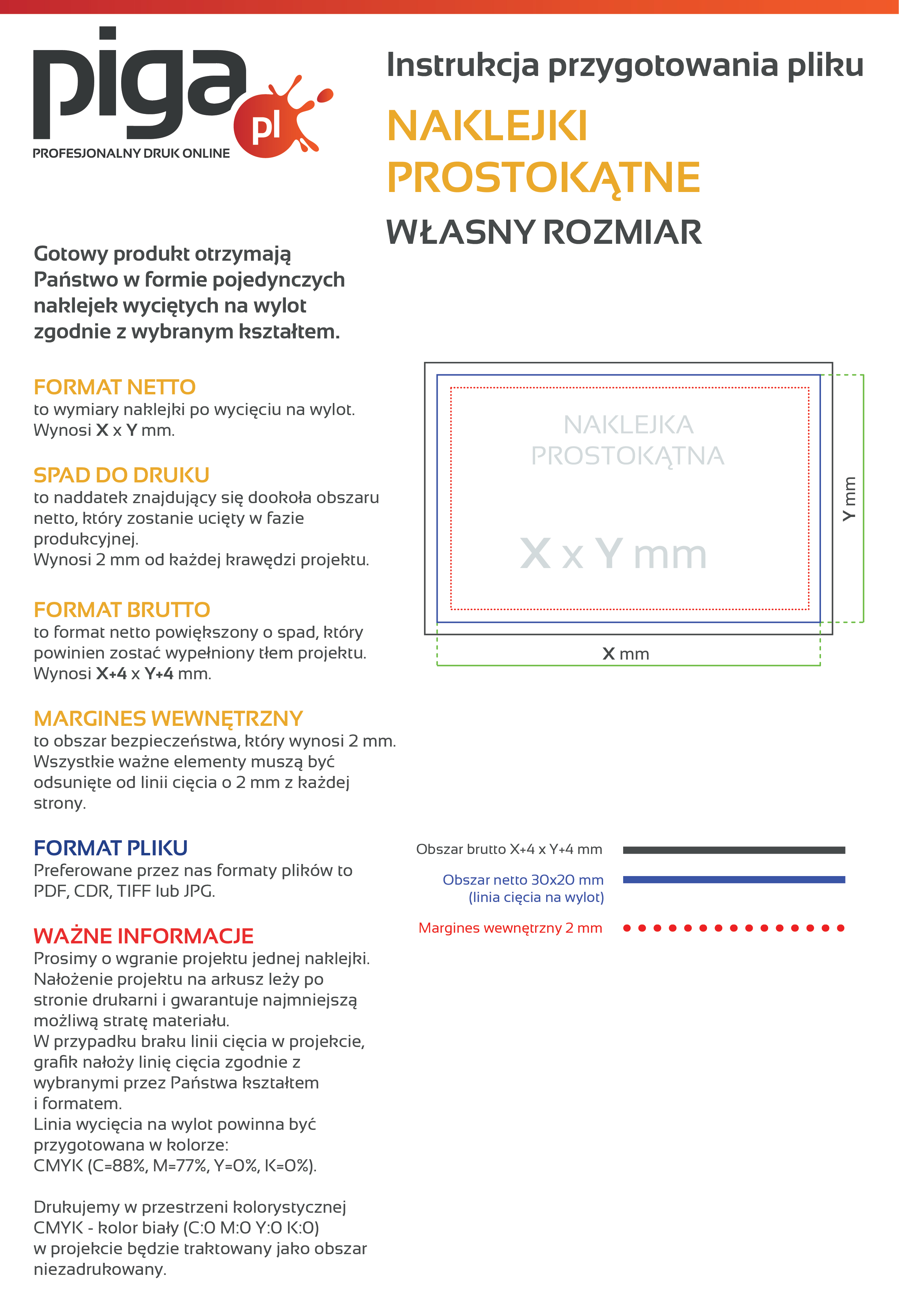 Preferowane przez nas formaty plików to PDF, TIFF oraz JPEG. Udostępniamy instrukcję przygotowania pliku oraz szablony/makiety dla poszczególnych programów graficznych, zapisując je na dysku otrzymujesz zwymiarowane pole robocze, w którym możesz zaprojektować swoją grafikę. Kliknij w ikonkę i ściągnij plik.