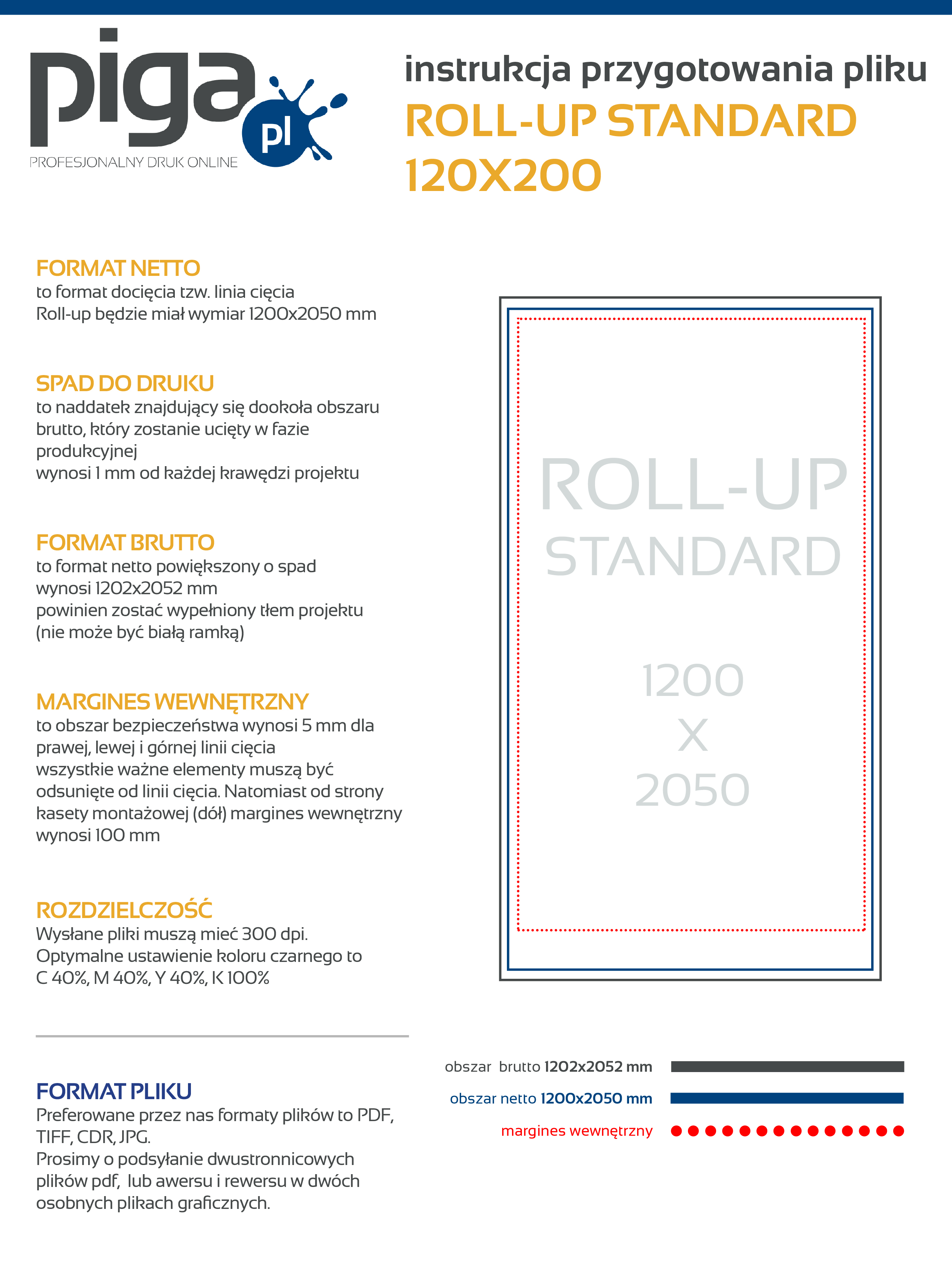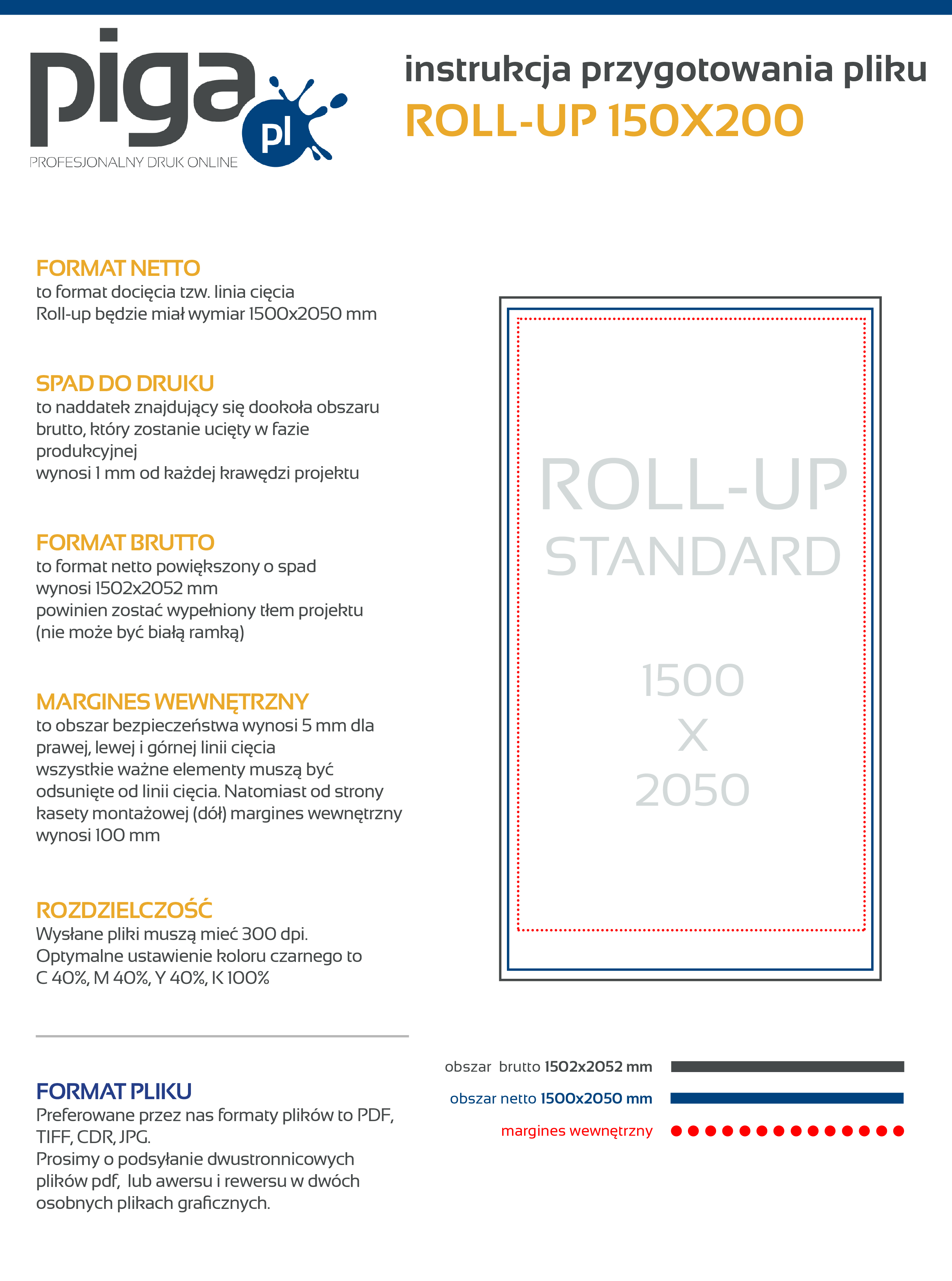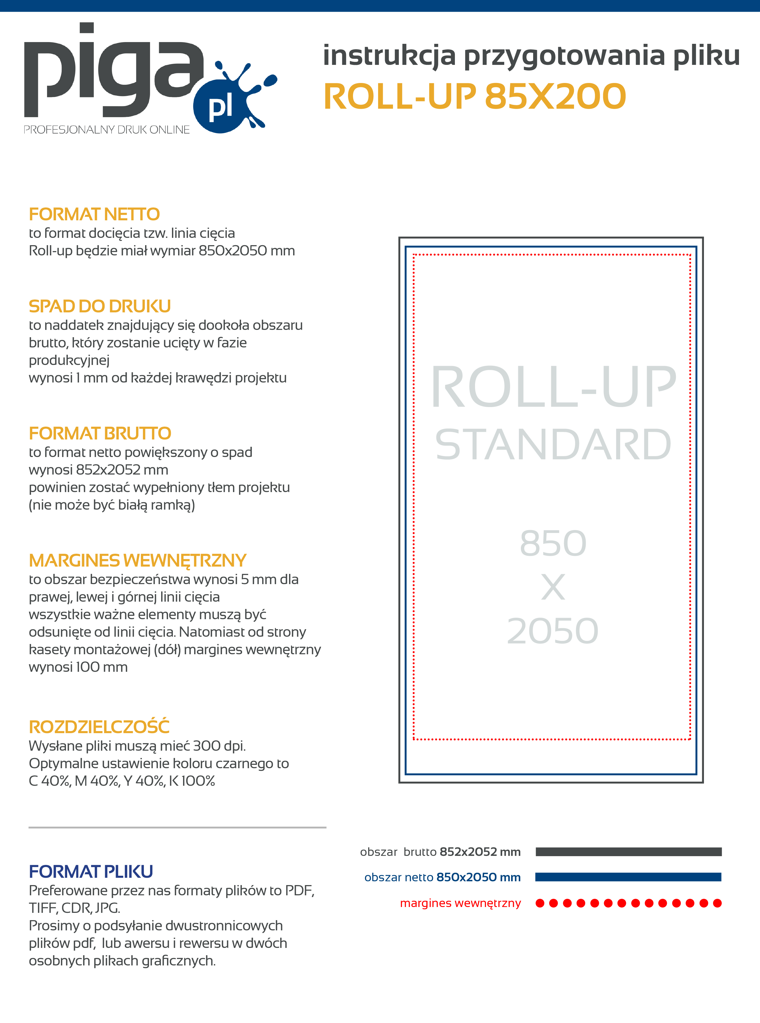 Preferowane przez nas formaty plików to PDF, TIFF oraz JPEG. Udostępniamy instrukcję przygotowania pliku oraz szablony/makiety dla poszczególnych programów graficznych, zapisując je na dysku otrzymujesz zwymiarowane pole robocze, w którym możesz zaprojektować swoją grafikę. Kliknij w ikonkę i ściągnij plik.