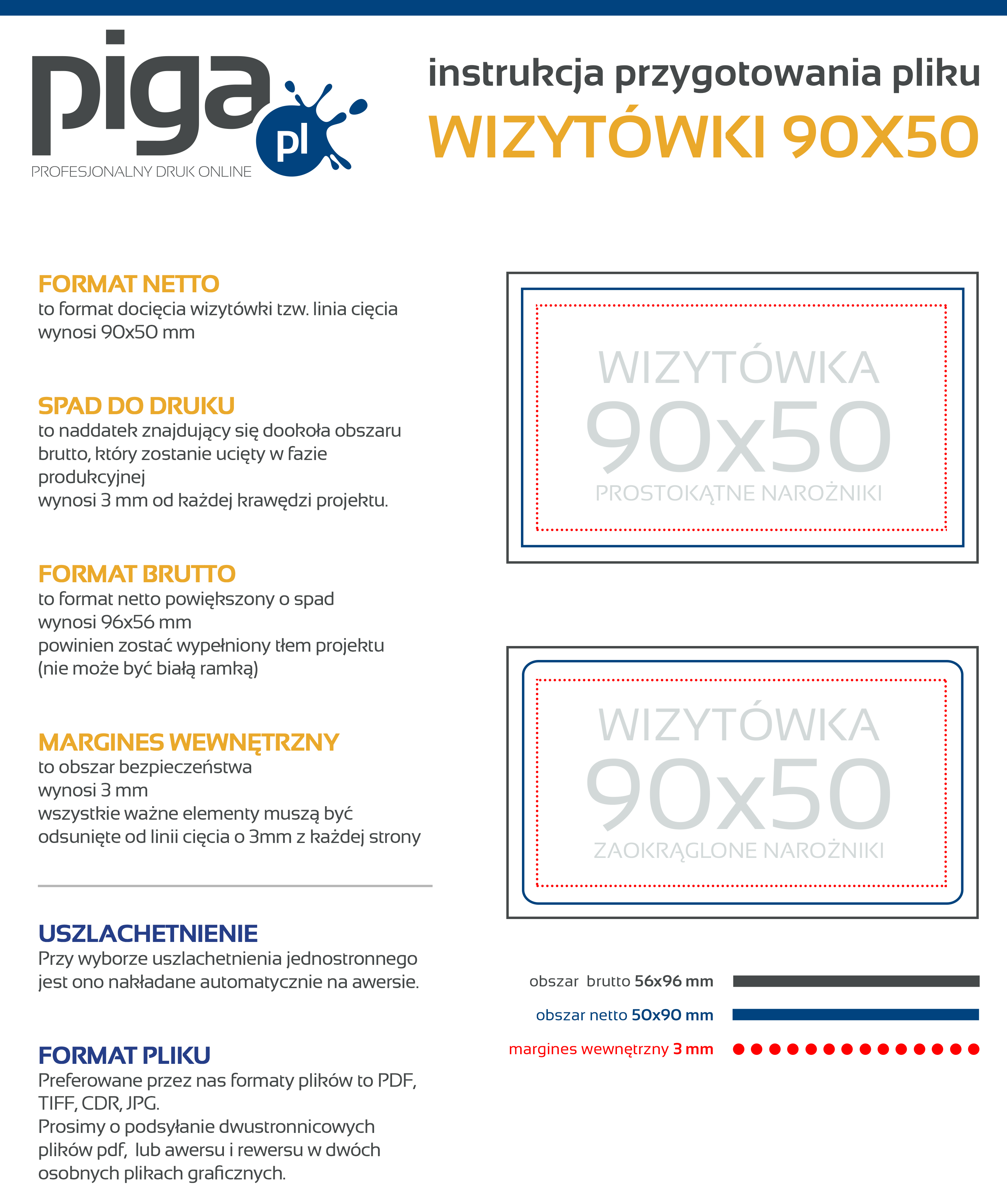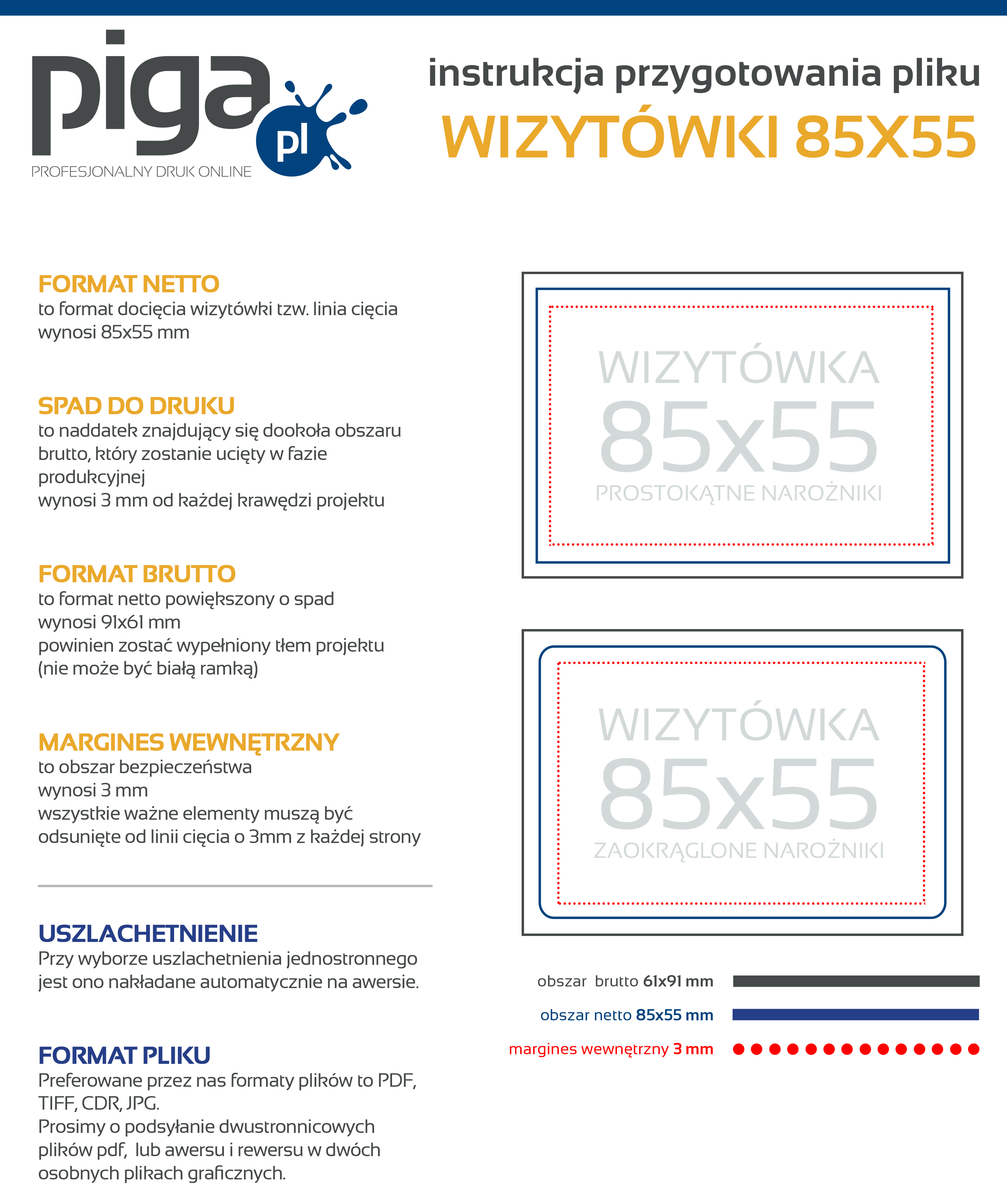 Preferowane przez nas formaty plików to PDF, TIFF oraz JPEG. Udostępniamy instrukcję przygotowania pliku oraz szablony/makiety dla poszczególnych programów graficznych, zapisując je na dysku otrzymujesz zwymiarowane pole robocze, w którym możesz zaprojektować swoją grafikę. Kliknij w ikonkę i ściągnij plik.