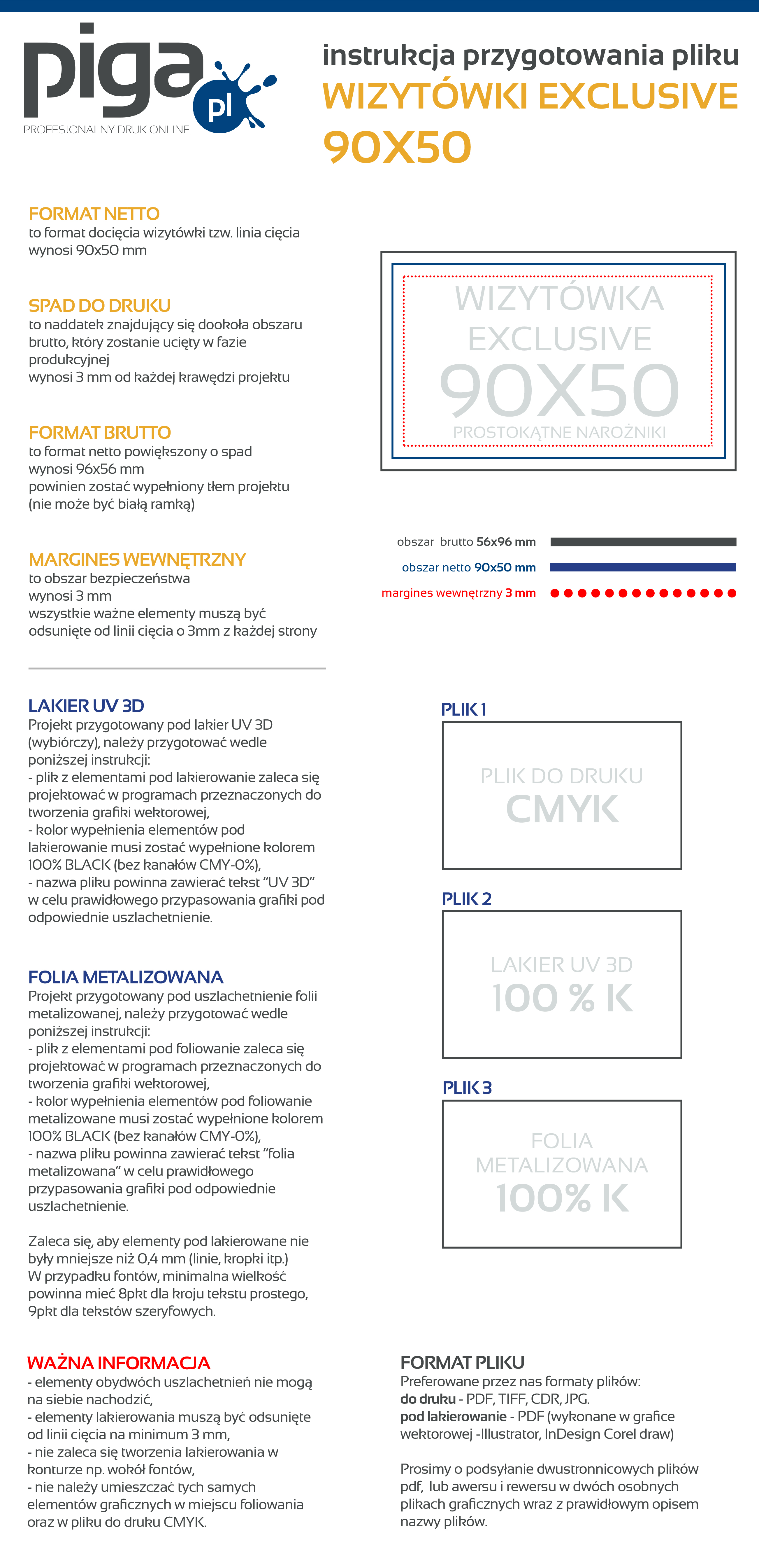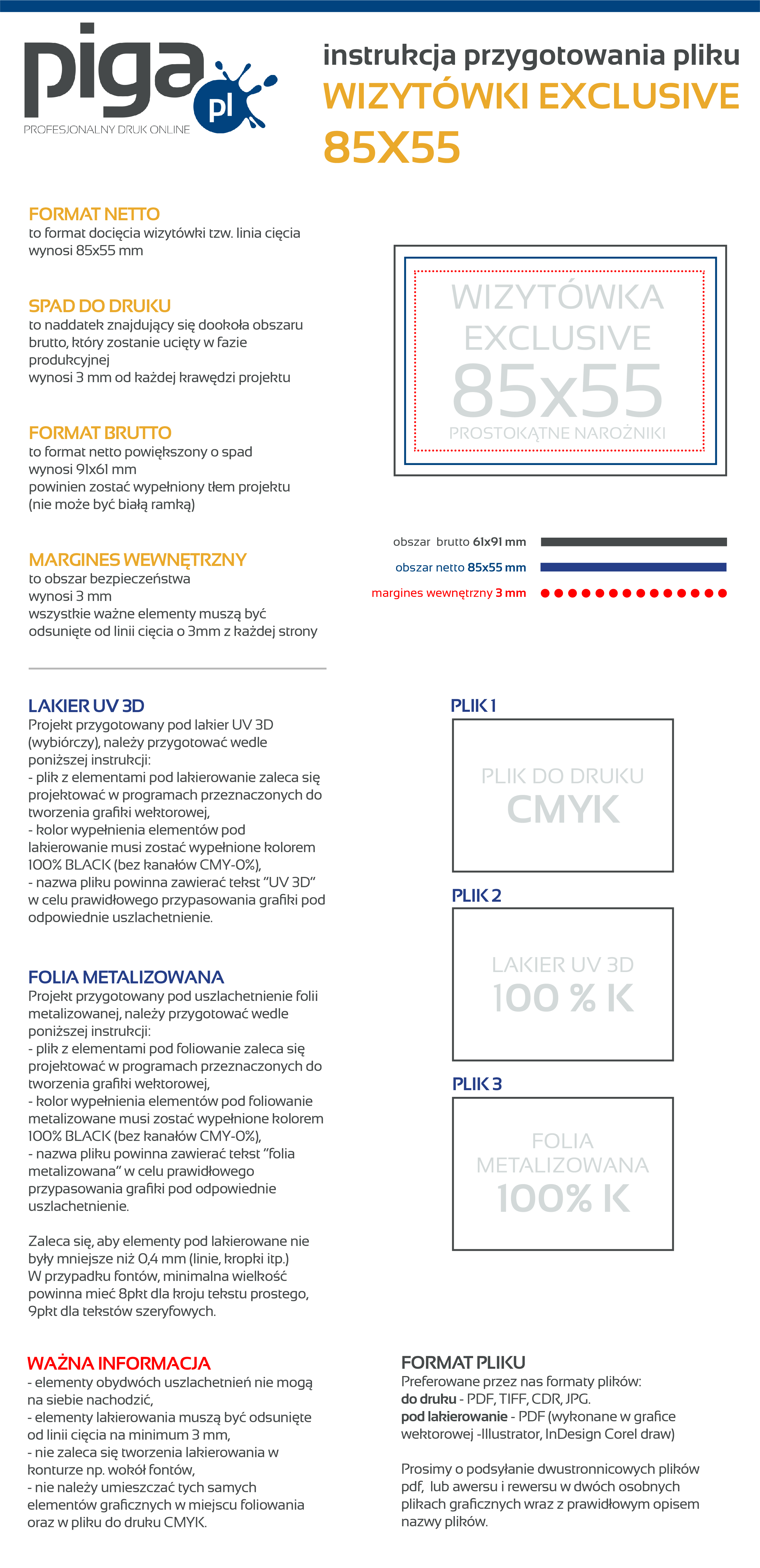 Preferowane przez nas formaty plików to PDF, TIFF oraz JPEG. Udostępniamy instrukcję przygotowania pliku oraz szablony/makiety dla poszczególnych programów graficznych, zapisując je na dysku otrzymujesz zwymiarowane pole robocze, w którym możesz zaprojektować swoją grafikę. Kliknij w ikonkę i ściągnij plik.